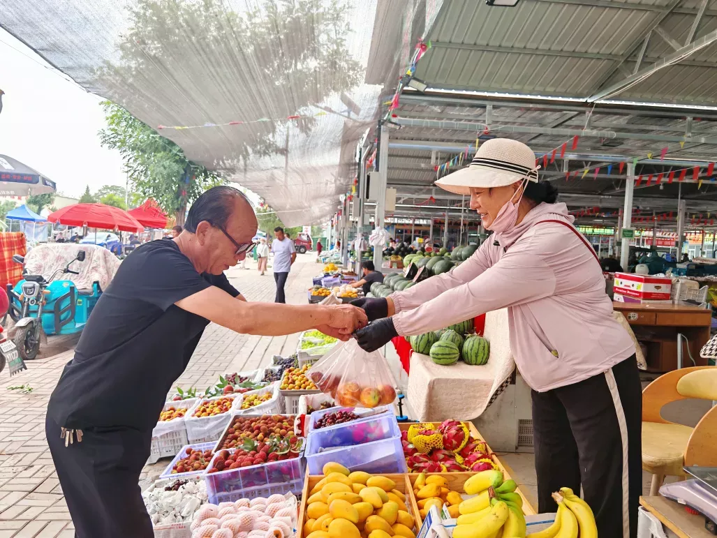 7月29日,在吴忠市利通区李园城东早晚市,104个摊位整齐排列。市场环境整洁,蔬菜、水果等商品琳琅满目,附近居民纷纷走进市场,挑选自己所需的物品。此起彼伏的叫卖声交织在一起,让整个市场充满浓浓的“烟火气”。