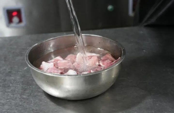 5月6日,海原面包羊羔肉非遗代表性传承人用水浸泡羊肉。