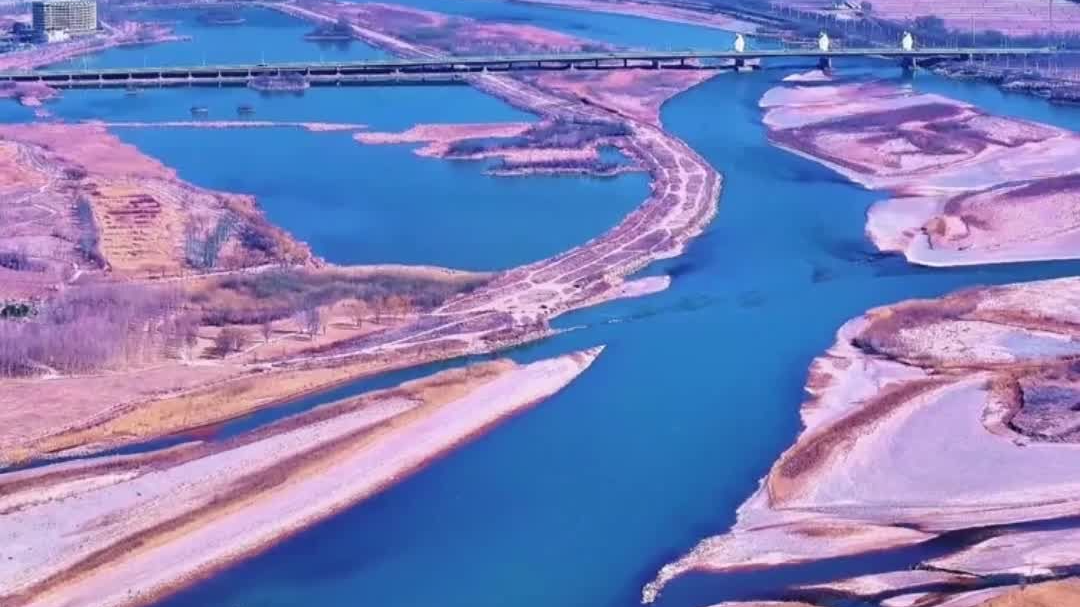 石峡口水库:雪落丹霞映春水