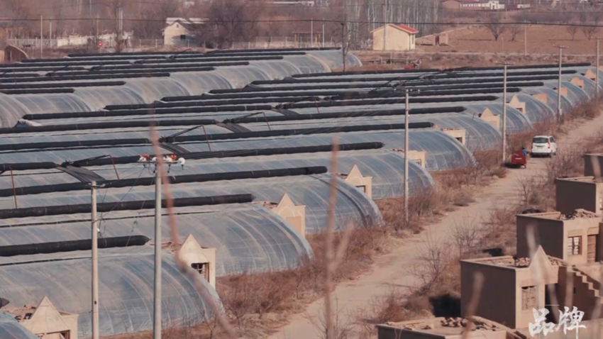 荒漠化土地被重新修复后呈现出的价值,在中卫的土地上不断延续。12月,寒风裹沙的时节,不远处的鸣钟村,温室大棚里正孕育着另一份生机。