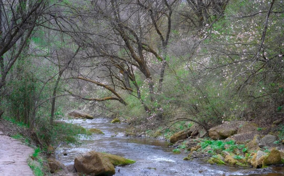 看山花漫坡、溪流潺潺