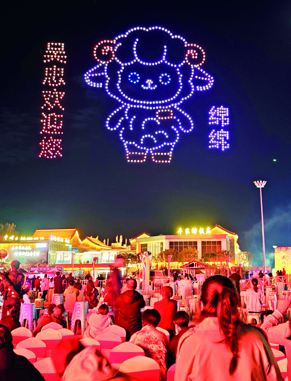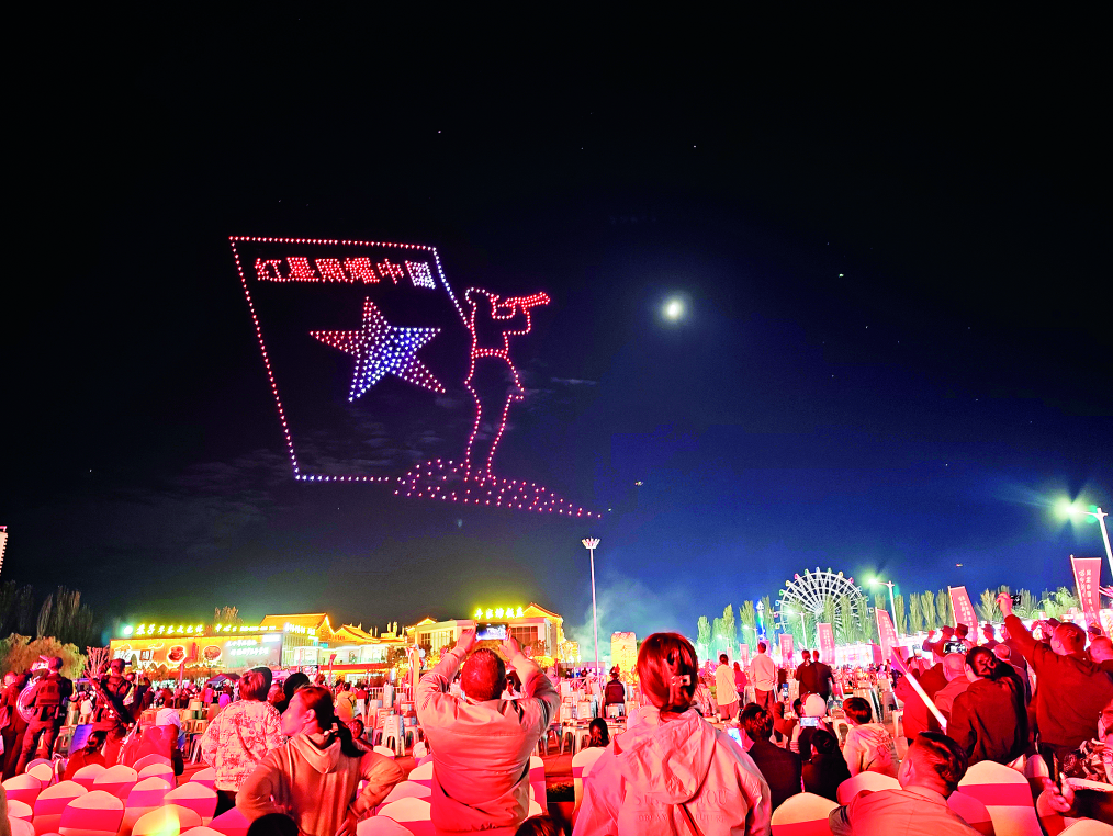 音乐会后,千架无人机以天为幕、以光为笔,在夜空中展开一场震撼的光影盛宴。“时空之门・黄河长歌”“石榴凝情・同心筑梦”“五星闪耀・家国同梦”等13个图案依次呈现,生动展现吴忠的自然风光、产业特色、红色文化和美食风情,以音乐与光影,与广大市民游客共赴这场早茶美食文化节的舌尖之约,共庆国庆佳节。